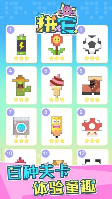 拼它是一个休闲类的烧脑拼接图案的游戏。用五颜六色的图块拼出一个多彩的世界,精致可爱的拼图场景,拼图完成后才会显示它原本的模样,每个拼块都有独特的形状,趣味性与益智性的结合,说不定此时你会惊呼:原来我拼的是这个?感受完全不一样的烧脑解密过程。