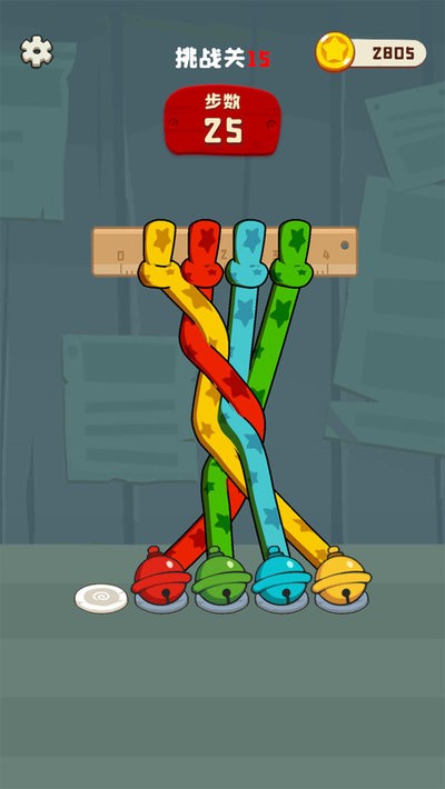 烧脑闯关玩法,解开所有绳结,在有限的步数内,解开一切绳结的关卡。