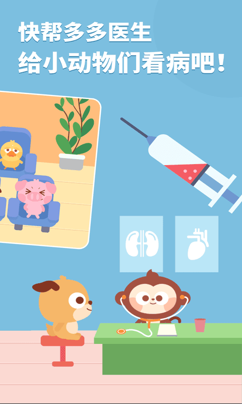 多多医院游戏是一款儿歌多多旗下系列早教启蒙游戏软件,拥有着精致可爱的简约卡通画面,模拟还原真实的医生工作场景,超多的病患需要救治,玩家将化身医生与患者对话,解决各种健康疾病问题,完成更多游戏任务,丰富孩子们的医学知识!