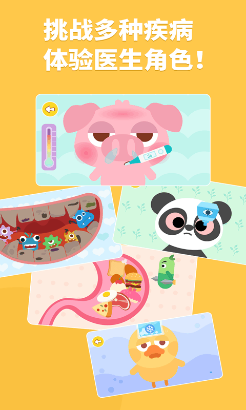 2、增添病患场景以及疾病医疗知识解说,让宝宝学习了解更多医护常识,完成挑战即可赢得奖励哦!