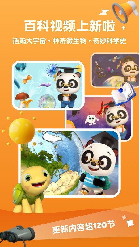 “百科知识、动画世界、益智启蒙”3大核心内容板块,超100+项趣味益智内容,600+互动小练习,340+百科视频,熊猫博士始终坚持“以兴趣为起点,以好奇心为导向”,帮助孩子实现“语言、思维、逻辑、情商、创造力”的多维度启蒙。现在跟熊猫博士一起学习知识、开拓视野吧!