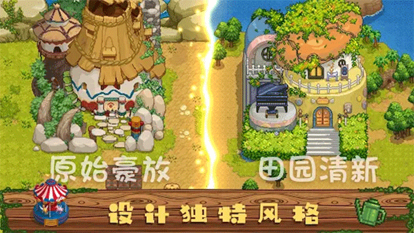 2、小镇的设施也各自有各自的作用,木匠铺能建造庄园建筑,铁匠铺能升级工具,杂货铺能购买种子等,其他的设施还要等你们亲自来游戏,一探究竟!