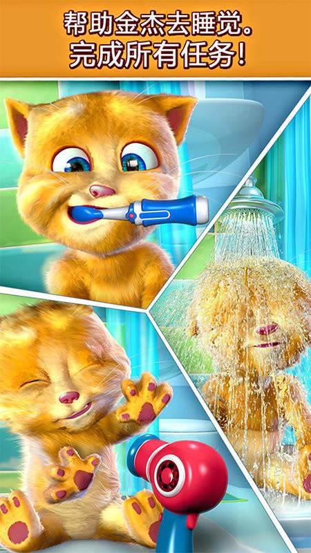 会说话的金杰需要你的帮助!帮他准备好上床睡觉,时时刻刻尽享欢乐!金杰是你最好的伙伴,跟他说话、挠他痒痒还可以和他一起玩游戏。您甚至能看到他在夜晚梦到些什么!享受你和这只小猫咪的快乐时光,录制你的欢乐视频并在线分享!