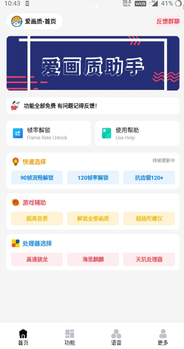 一款完美精简的画质帧数修改工具,他能突破机型的限制,使得游戏体验更加优化到位。并且增加了互动功能,支持语音和陀螺仪等工具,支持安卓10高版本系统修改。