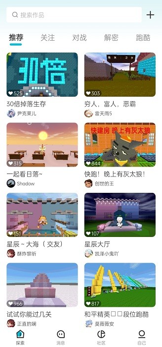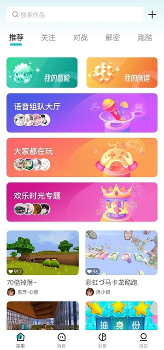 冒险、创造、对战、解谜、跑酷等你爱玩的全都有
