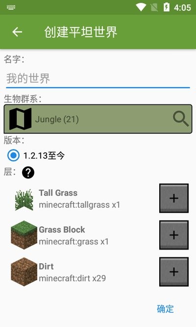 打开btr后,除了显示存档外,下面还有一个“+”号,用来制作超平坦存档。