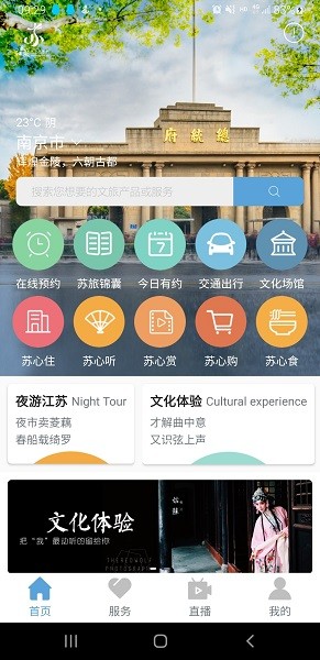 同时全方位提供江苏省以及重要相关地级市的“天气”“查导游”“找车位”“交通出行”“场馆预订”全方位多维度的公共服务,
