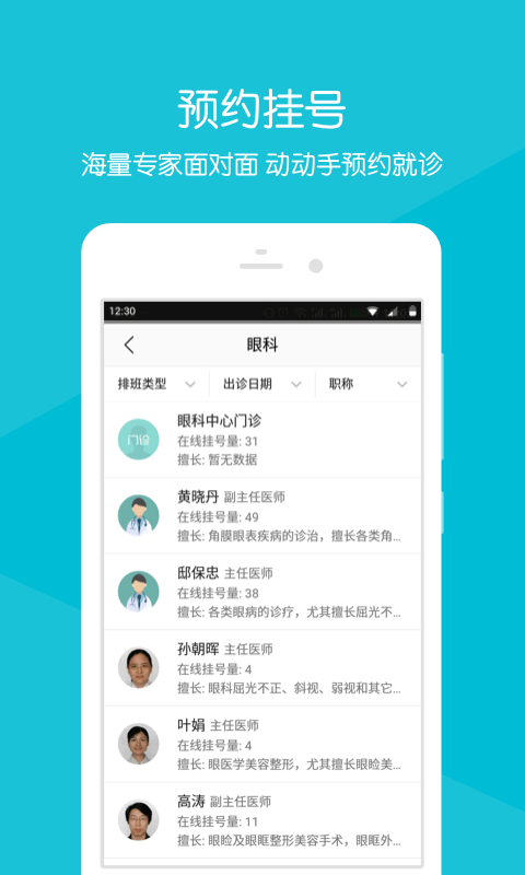 可根据时间段、科室、专家在客户端自由进行门诊预约