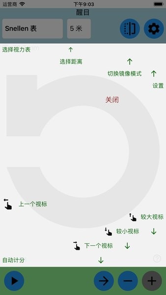 此APP精确和动态地产生视力表,支持史奈仑视力表(Snellen Chart),