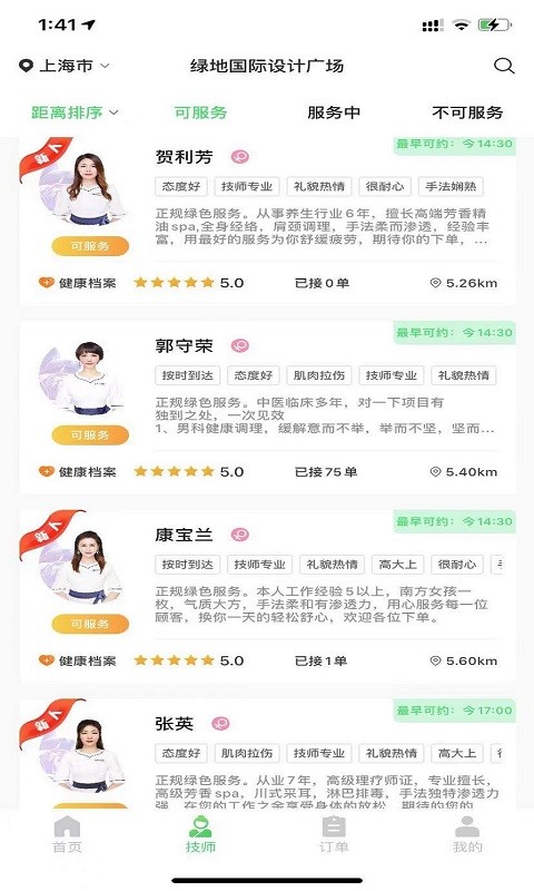 连接本地附近技师。汇聚了上门推拿按摩spa,为用户提供高品质按摩服务。