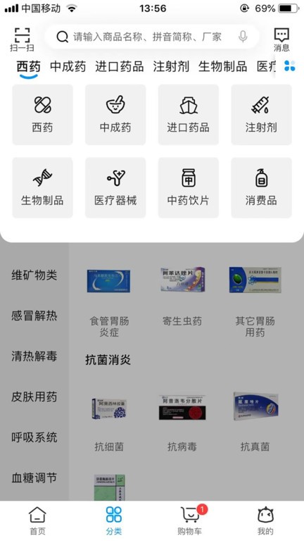 支持用户直接检索查看药品或者厂家,直接输入关键词快速的检索查看;