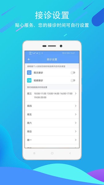 2、时间自由,每一位医生都能根据个人的上下班情况进行时间的自定义设置。