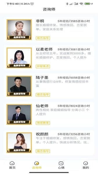 由资深情感专家指导,汇聚恋爱情感、婚姻家庭等各领域专业咨询师的情感咨询软件。