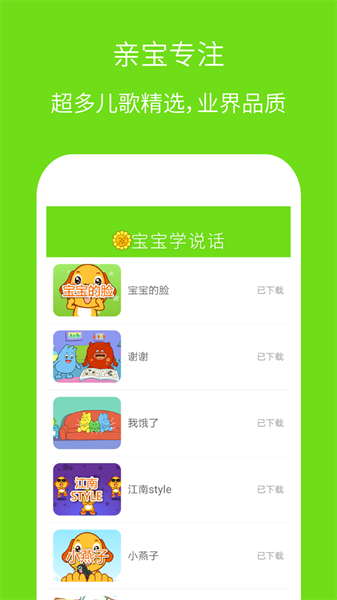 软件最大的亮点是教宝宝正确发音,语速平缓,特别适合小宝宝模仿学习。而且还能切换多种语言,比如英语、日语等,对学外语很有帮助。最棒的是没有任何广告,家长可以放心让宝宝使用。