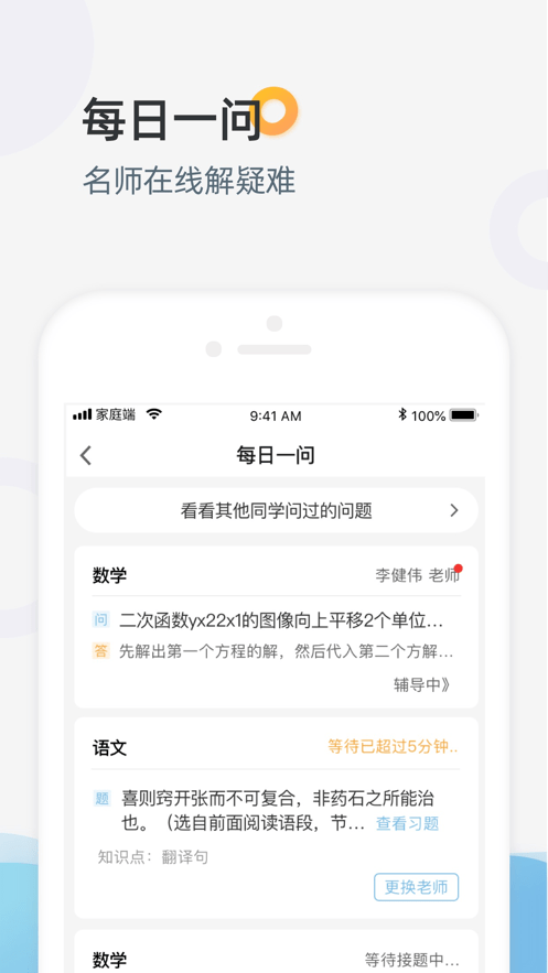 家庭端app是优师端的家庭版,适合家长和学生用户来使用,可以查看老师布置的家庭作业,可以在线做作业,错题自动整理,复习方便,科目覆盖面广,可以在课程中心学习最新的课程知识,可以向老师和其他同学来提问,让大家帮你答疑解惑!