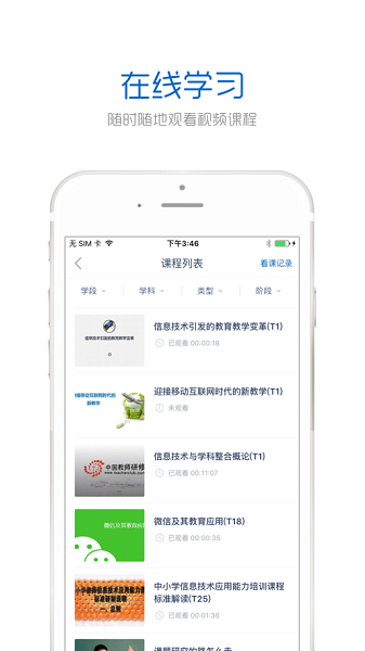 学习:在线研修培训,观看课程、参加活动、查看作业,随时掌握学习成绩及进度,有的放矢效率更高。