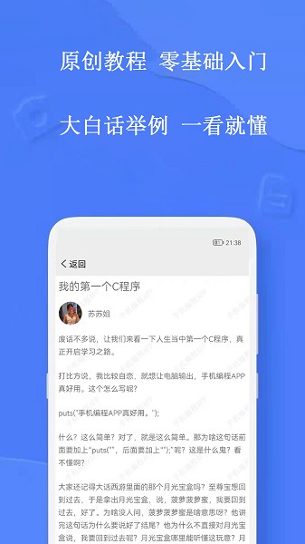 这是一款初学者使用的手机编程类APP,也是一款优秀的编译器。我们花费了大量的精力准备了原创教程。编程,就上手机编程app。