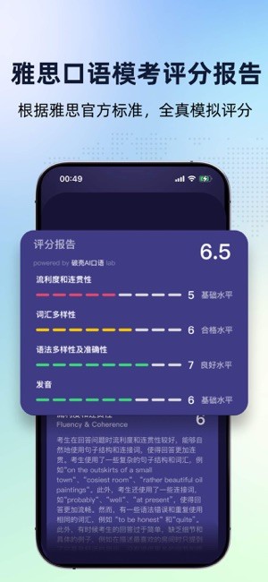 3、获取详尽的雅思口语模考评分报告,依据雅思官方评分标准,全真模拟考试环境进行评分,让您清晰了解自身水平,明确提升方向。