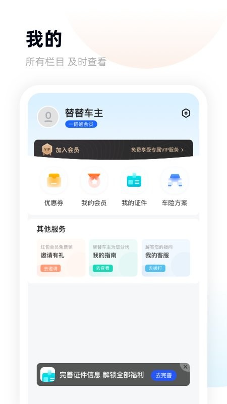 替替车主手机版是有着丰富的车险种类的汽车售后服务平台,大家可以在这里购买相关的车险,在出事情之后可以进行理赔,各种信息操作都是快速又方便的,账号信息快速同步,直接就能查看自己办理的业务!