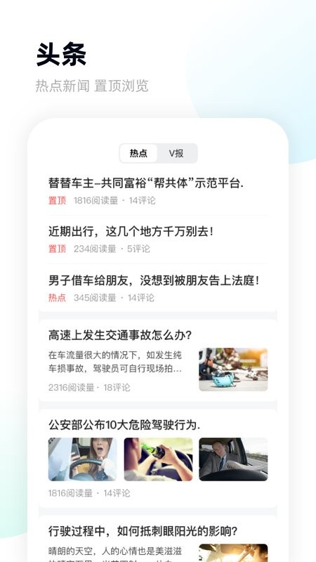 增加头条、v报栏目,可浏览、点赞、发表你的任何想法