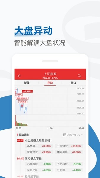 实时监控大盘与板块的异动,迅速给出异动信息提醒,帮助短线.超短线投资者及时把握市场机会。