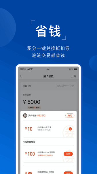 4、超级省钱:交易时积分一键兑换优惠券,笔笔交易都省钱