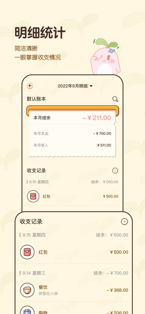 采用可爱设计的键盘,只需轻松三步,即可迅速完成一笔账目记录,让记账变得既简单又有趣。