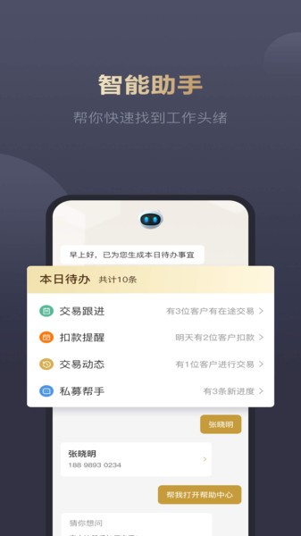 3、在平台里能够掌握营销线索,帮助用户更好的进行理财,快速的使用;