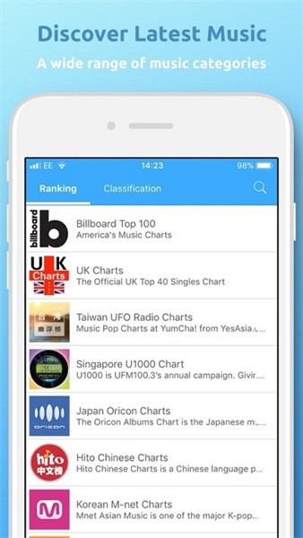 Tunepro安卓版的功能也很多,每周还会更新各国排行榜单,总能发现一些新鲜的歌曲。而且资源更新速度很快,每次打开都能听到最新的音乐,完全不用担心听腻了。这么多功能还都是免费的,真的太划算了。