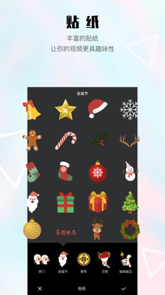5.贴纸:各种丰富有趣的贴纸,让你的视频更加生动有趣。