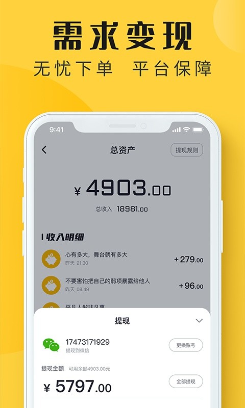 交易过程由平台监管,保证交易过程安全透明。平台安全托管订单金额,交易成功,双方确认后才扣款。在配音多多感受自由,实惠,高效,便捷的交易体验。