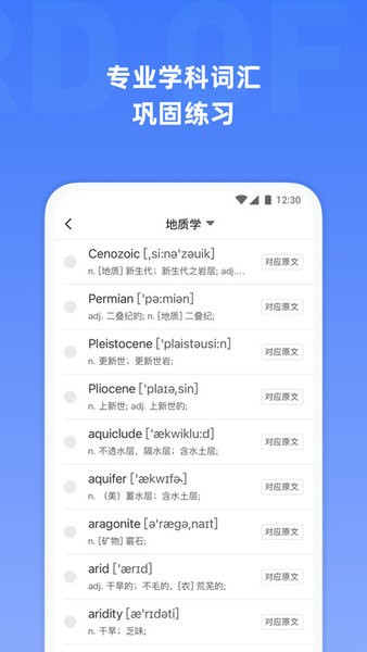 6.按学科分类了单词,分类有语境,让用户背单词有语感,轻松的记忆单词。