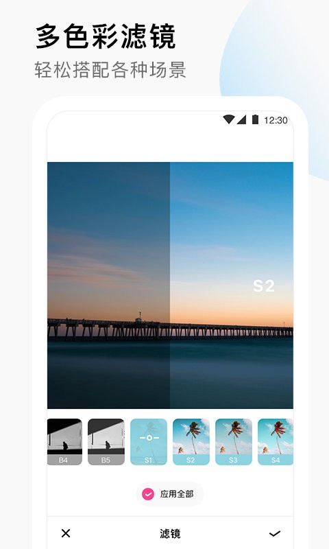 提供了多色彩滤镜,涵盖了黑白、胶片、马卡龙等,可以轻松搭配各种场景;