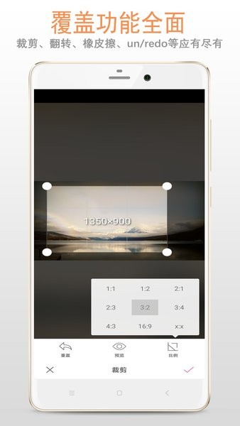 5、支持自由裁剪与8种固定比例的裁剪操作。