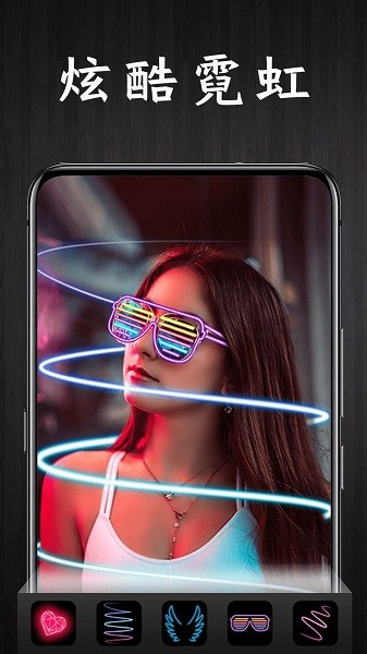 【霓虹特效】在您的照片上添加霓虹灯效果,如圆形、方形、三角形、螺旋等;