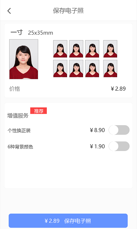 1、满足所有尺寸要求:齐全的证件照规格,一寸照、二寸照、身份证、各国签证照…