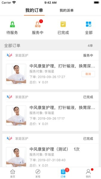 家庭医护医护端app最新版适合护士人员来使用,能够查看最新的订单信息,支持在手机上查看派单情况,有详细的服务项目、上门时间等,还可以查看自己的所有订单进度,能查看客户的详细评价信息,让自己的服务更完善。