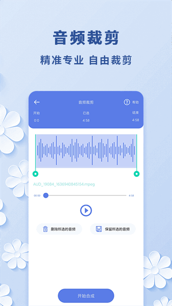 4、音频裁剪:可以对各类型的音频剪切制作,选择删除裁剪所选的音频或保留所选的音频