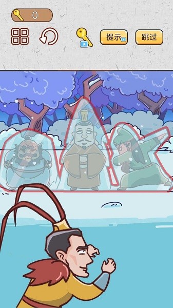 爆笑三国传小游戏是一款采用卡通画面打造的休闲闯关游戏,众多三国名将英雄角色悉数登场亮相,设计出丰富多样的游戏关卡任务挑战,难度不一,循序渐进,还提供提示功能助力通关,通过改变角色动作,将角色躲藏起来,操作灵活简单!