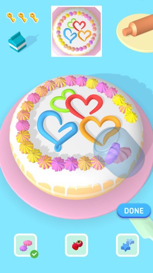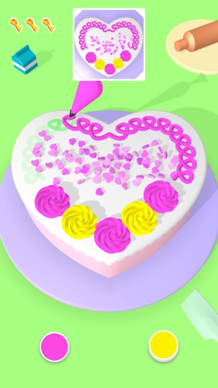 来亲自参与烘培吧,激发你内心蛋糕师的潜质,测试以下蛋糕装横技巧吧,这里超多有趣的蛋糕制作方法,供你来制作,上色,裱花,装饰和抹平奶油。你能装饰完美的蛋糕吗?只需用手指冰蛋糕,撒上种子,水果即可。请勿将蛋糕装饰工具洒落。