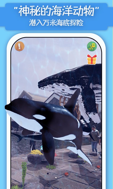 猫小智动物园AR探索恐龙海底森林游戏中玩家可以探索各种动物,玩家仿佛身处一个庞大的动物园,能看到凶猛的恐龙、海底生物、森林中的各种老虎等,有非常趣味的动物讲解,支持双英文朗读,让孩子在了解动物百科知识的同时还学习英语。