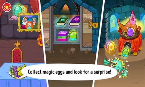 游戏画面色彩鲜艳,场景多样,从闪亮的王座房间到黑暗的地下城,充满冒险感。孩子可以在城堡的不同房间里自由探索,每个房间都有独立的故事线。操作简单,适合小朋友独自玩耍,还能通过完成任务学习新知识。