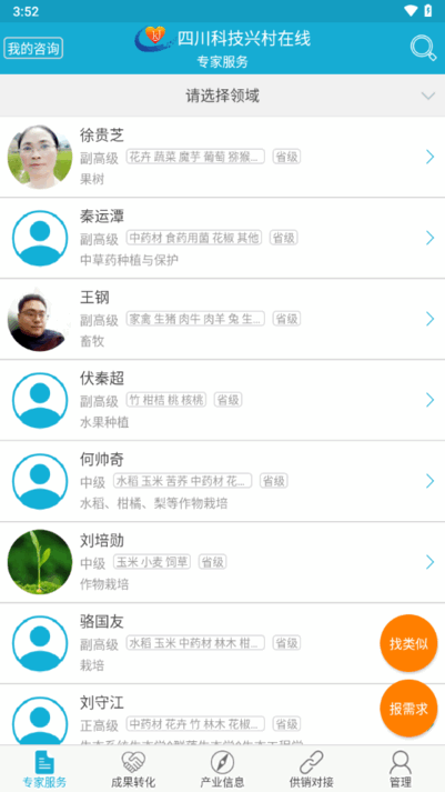 四川科技兴村在线用户版是一款致力于乡村振兴发展,提供扶贫服务的应用平台,面向四川省本地各产业贫困户,涉及不同领域,实时更新最新政策,提供专家服务,产业信息随时了解查看,在线查询,供销对接,推动发展、乡村振兴!