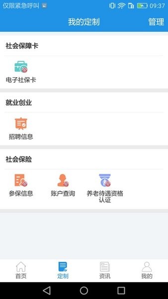 5、可实现账户查询、缴费查询、待遇享受、医保信息、定点机构等功能。