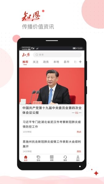 恩施日报知恩app即为恩施新闻网 - 恩施州综合门户网站手机客户端,是由恩施日报社打造的本土化新闻app,依托恩施日报的资源,知恩让市民可以手机看报纸,本市新闻轻松看;更重要的是软件还对决了政务服务窗口,办事更容易。