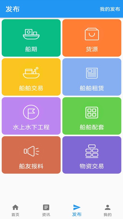具备免费的货源信息发布、船源信息发布、船舶买卖发布、工程信息发布、船员求职发布及招聘发布等六大功能。