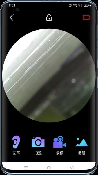 通过摄像头查看耳朵里的脏污,并通过手机屏显示。