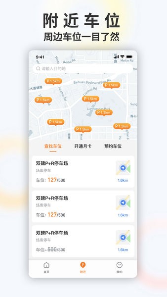 4.支持根据当前位置推荐附近的车位并导航前往;