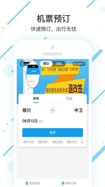 机票预订功能,可让用户在线快速预订国内或国际机票;