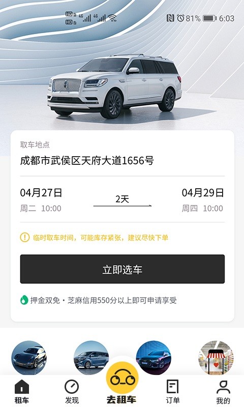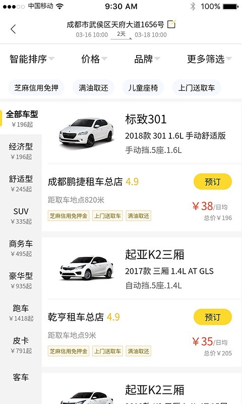【一键租车】无需繁琐操作,APP内完成订单,上门送取车,让租车像点外卖一样简单